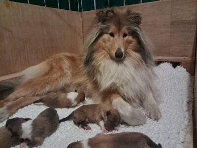 Es sind 3 Rüden und 3 Hündinnen in der Farbe sable .